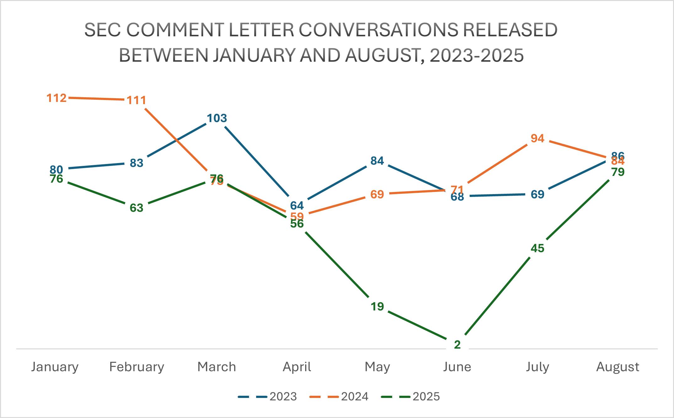 Figure 1 – SEC Comment Letters Released on EDGAR between January and August, 2023-2025
